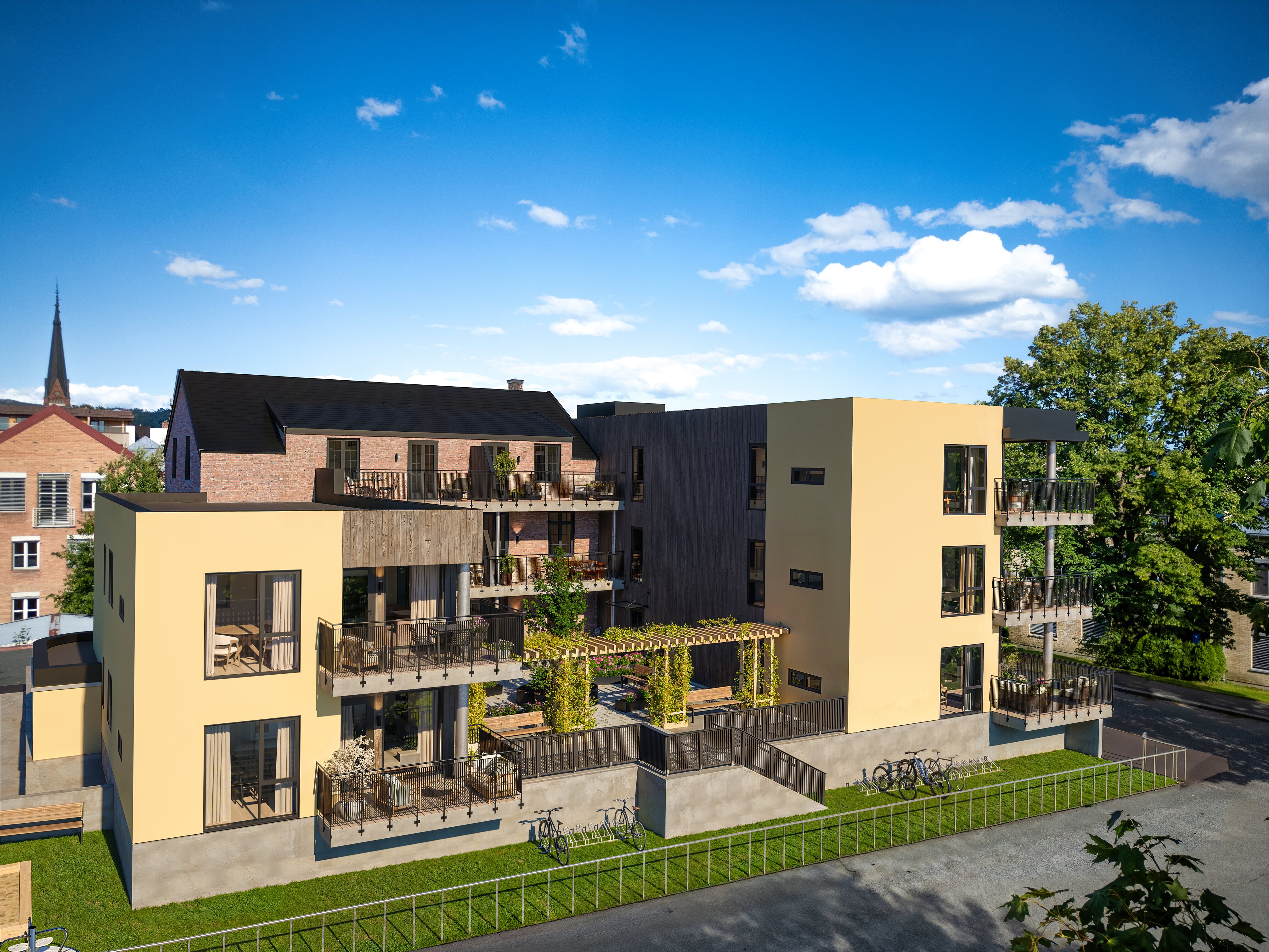 14 flotte selveierleiligheter med gjennomtenkte planløsninger, vestvendte uteplasser og gode solforhold. Boligene er tilpasset mennesker i ulike faser av livet – enten du er ung og ønsker et urbant hjem med særpreg, eller du ser etter en mer lettstelt og komfortabel bolig. Felles for alle er ønsket om å bo godt – med identitet, kvalitet og tilhørighet.